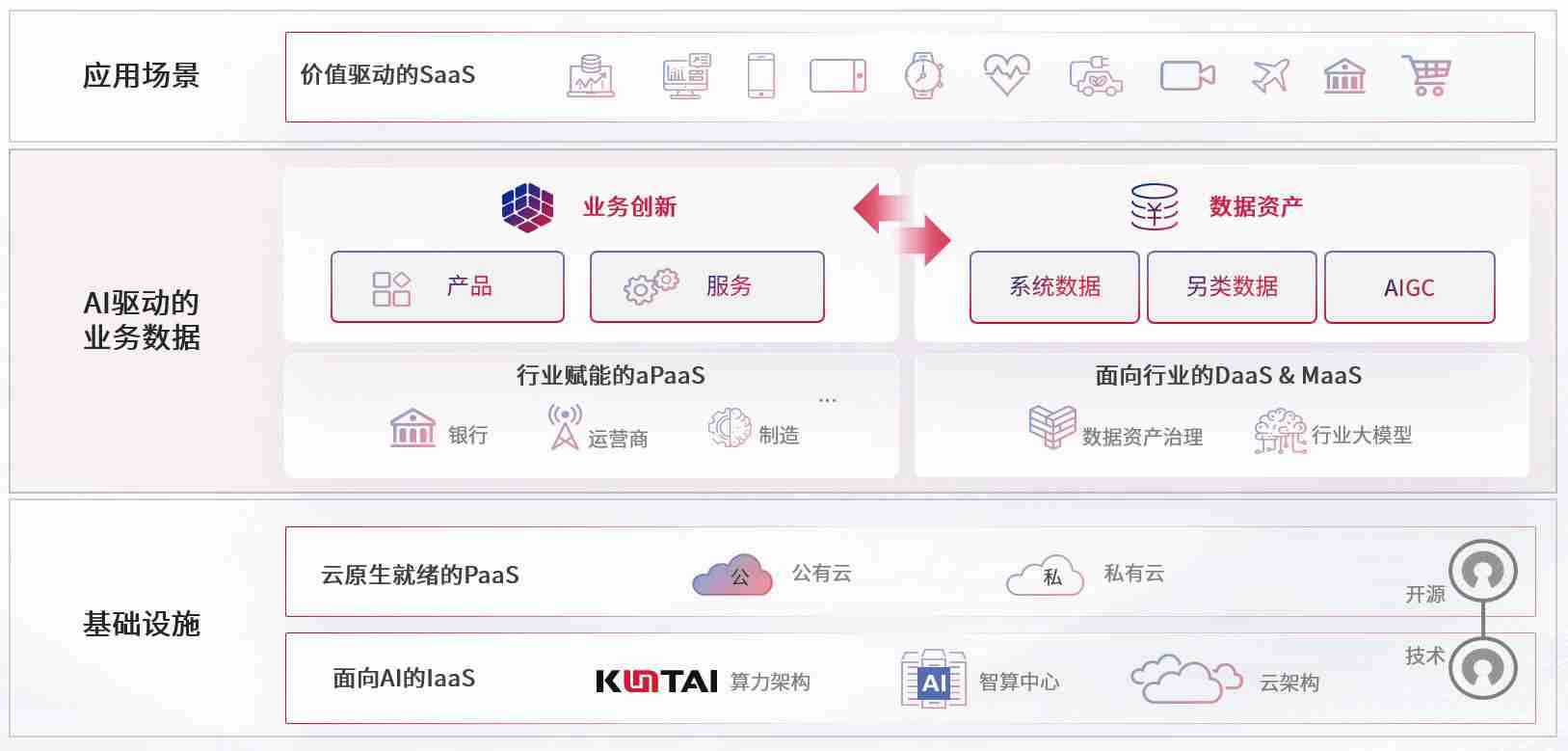 数字时代,,围绕企业数字化转型的关键要素,,,z6mg人生就是博数码开创性的提出数云融合战略和技术体系框架,,,,着力在云原生、、、、数字原生、、、、AI原生和信创产业上架构产品和服务能力,,,为处在不同数字化转型阶段的快消零售、、、、汽车、、金融、、、医疗、、、政企、、、教育、、运营商等行业客户提供泛在的敏捷IT能力和融合的数据驱动能力,,构建跨界融合创新的数字业务场景和新业务模式,,,,助力企业级客户建立面向未来的核心能力和竞争优势,,,全面推动社会的数字化、、、、智能化转型升级。。